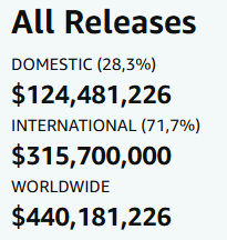 На производство фильма было потрачено $180 млн без учёта маркетинга. По итогам проката фильму прогнозируют $750-800 млн.