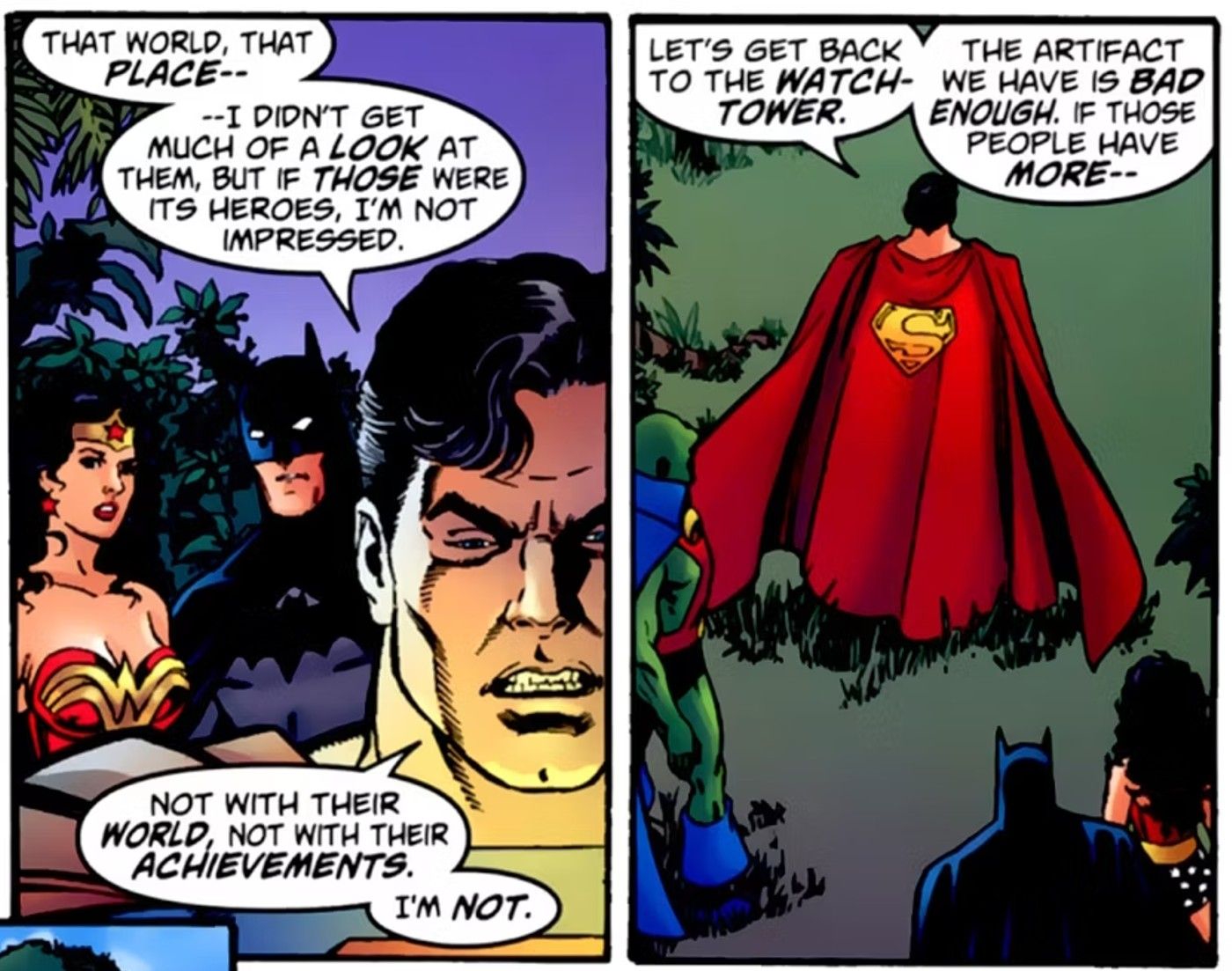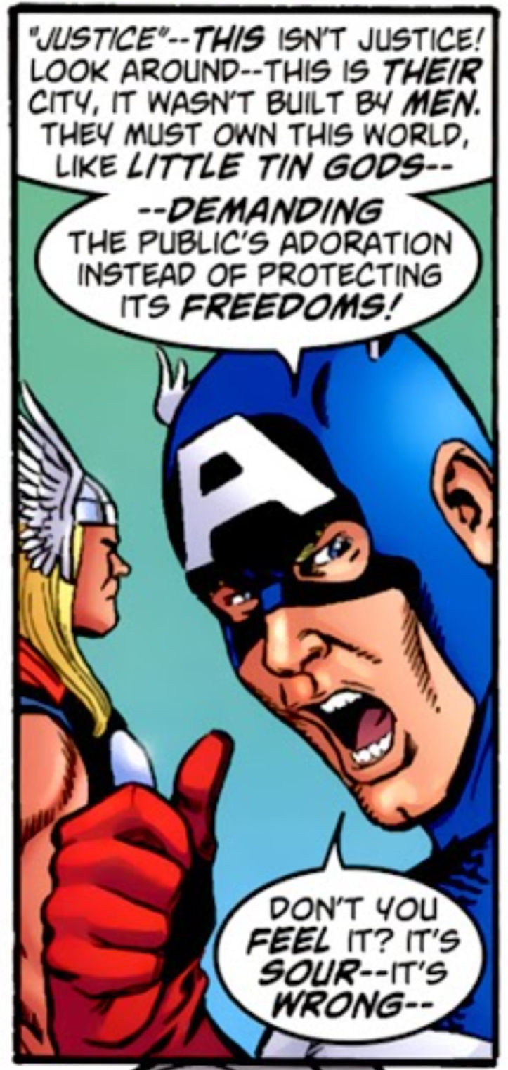 Во время коллаба ДС и Марвел Капитан Америка не мог поверить, что в мире ДС героев любят и почитают, и подумал, что они тираны какие то.