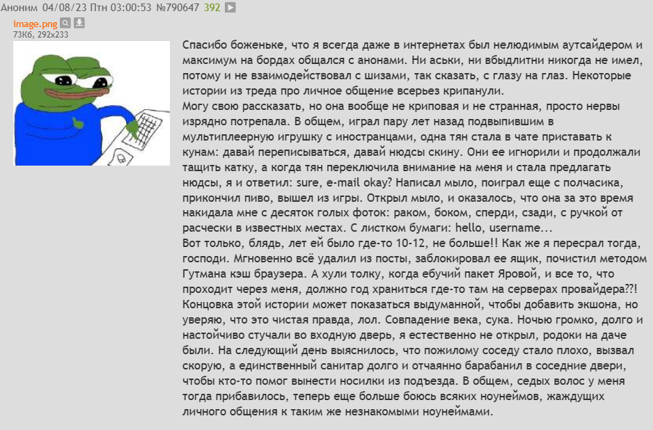 >>3994843 Потому что одному скучно. Друзей у меня нет, с которыми бы посидеть, поугорать совместно. Найти что-то серьезное, заслуживающее внимательного просмотра, пока не удается. А вот какой-нибудь "кошмар на улице вязов" с приятным человеком - было бы веселее, чем в очередной раз пытаться убить несколько часов на поиск годноты. Ей богу, порнуху уже проще на сотой странице найти порнхаба найти, чем годный хоррор. А в компании все веселее. Да пусть хотя бы и нормисы, но они ж обычно смотрять нормисное кино. Поэтому и спрашиваю