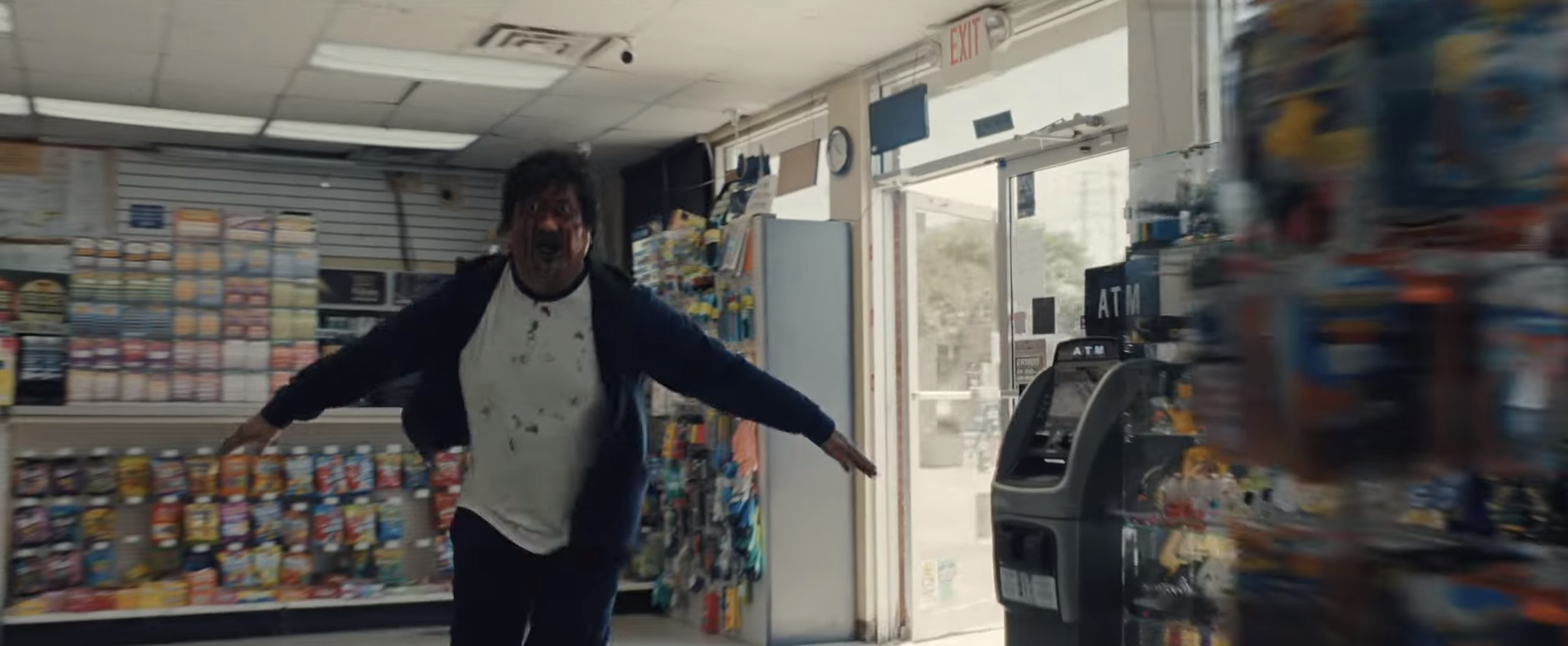 Всем привет. Пожалуйста, помогите вспомнить фильм. Американский, 2010-х годов, скорее всего где-то 2014-2016, но тут возможны варианты. Околохоррор/ триллер, из тех, у кого рейтинг 5-6 баллов из 10. Одинокий коммивояжёр, кажется, в очках, ездит по американскому одноэтажному захолустью на старенькой машине, при этом не встречая ни одного человека. Людей нет абсолютно нигде. По радиостанции передают, что в округе идёт охота на какого-то жестокого убийцу-маньяка. Коммивояжёр время от времени видит в небе какое-то странное красное свечение. Кажется, он с кем-то говорил по телефону, то ли с женой, то ли с сыном. В финале оказывается, что тот разыскиваемый маньяк, это и есть коммивояжёр, и его убивают разъярённые люди, заживо обливая кислотой.