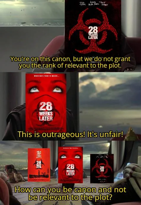Так в 28 недель спустя тоже вирус сделал многоходовочку женщину живым инкубатором. Даже тогда он потихоньку эволюционировал. В этой же части спустя 28 лет зараженные изменились. Они не блюют кровью. Моются в речке. Размножаются. У них появилась иерархия (тихоходки, альфы, обычные). Они сейчас на стадии тупых животных приматов атакующих все что движется. Довольно яростных животных. Даже в сцене с вагонами негр с оторванной башкой шведа бегал хотя мог ее выбросить.