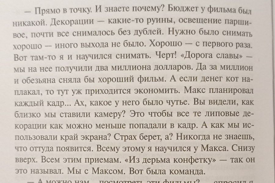 В целом, хорошо описывает и актуальное состояние кинематографа, когда современные технологии разнежили режиссёров и остальных участвующих. Слишком много прав на ошибку, от чего подход к съемкам стал формалистским, пубертатным вздрыгом эго. Особенно это заметно на страничках от мира кино, которые последние лет десять снимают невероятно гнусные в своей плохости фильмы.