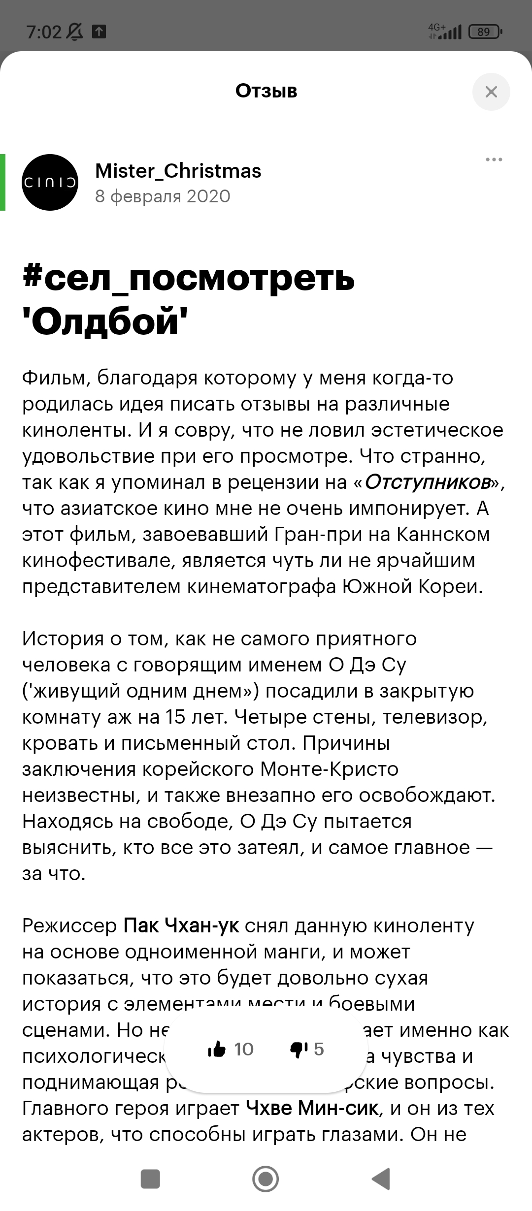 После этого вы уже немного войдёте в мир Великого корейского кино, а не распиаренного дерьмеца для масс.