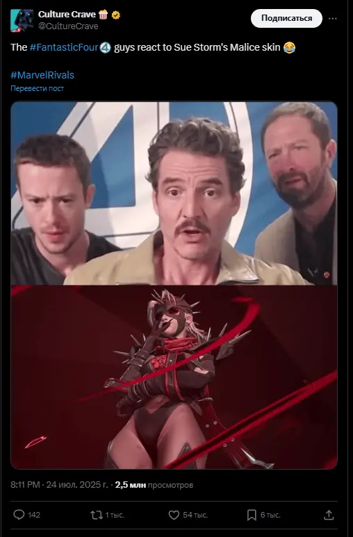 В сети завирусилась реакция актёров «Фантастической четвёрки» на скин Женщины-невидимки из Marvel Rivals