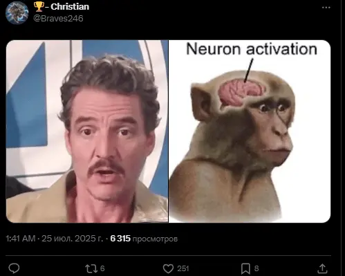 Волной мемов накрывает все больше социальных сетей тема тревожности и чрезмерной тактильности Паскаля. Точкой предела для "моралистов" стали кадры с обнимашками и поглаживаниями беременной Ванессы Кирби. И когда в Голливуде все давно уже подозревают, что Паскаль «играет за другую лигу» - простолюдины из интернета точат вилы и готовят факела.
