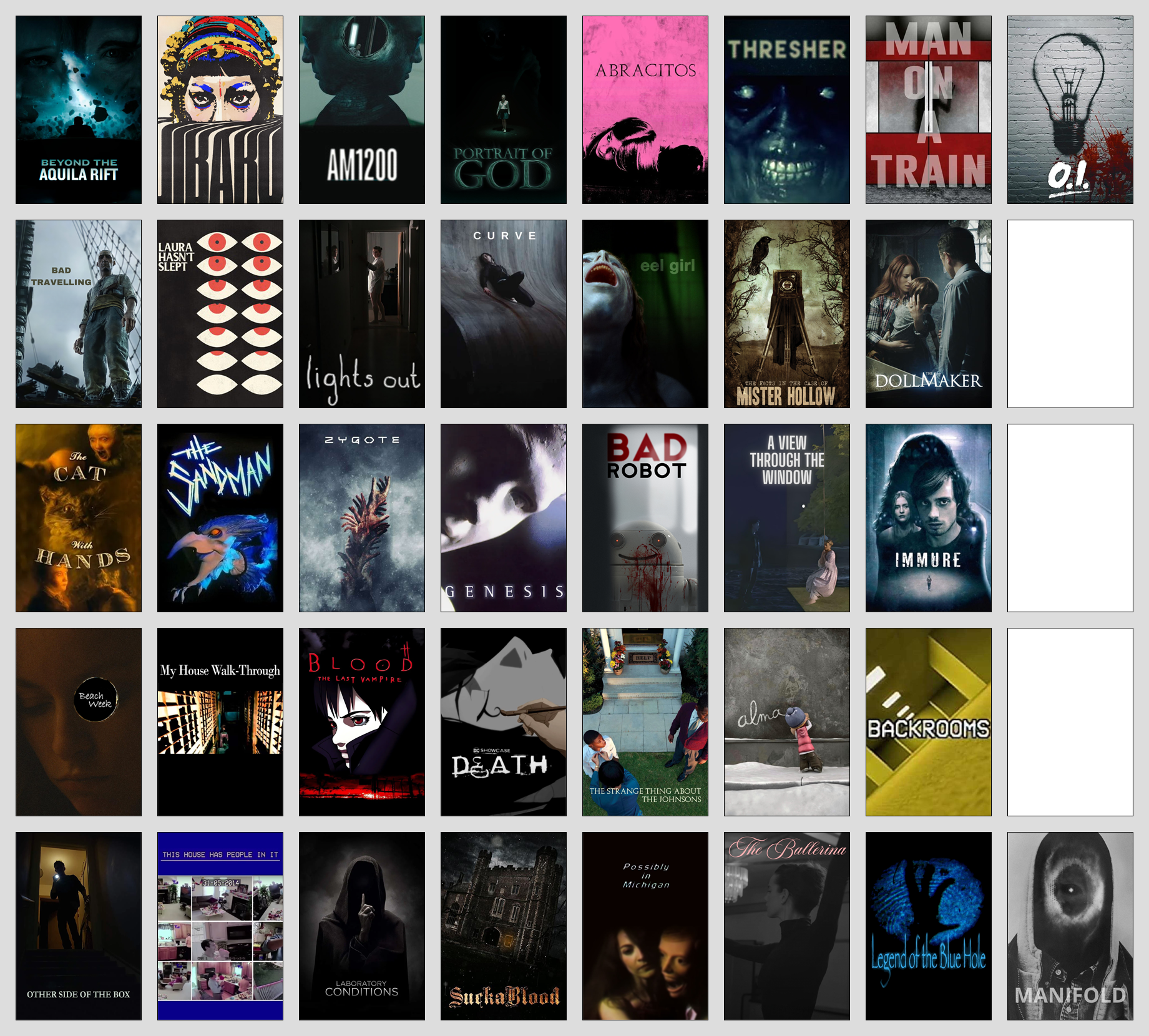 Реквестирую любой хоррор, в котором главная ебака/угроза/ситуация НЕ ОБЪЯСНЯЕТСЯ. Без всяких этих "на месте этого дома раньше было кладбище для оргий сатанистов" или "хозяева этого дома практиковали инцест и теперь их выродок живёт в СТЕНАХ" или "злобный врач нацист сделал хуйню и она СБЕЖАЛА". Вот просто гг сталкиваются с необъяснимым и пытается что-то с этим делать.