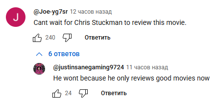 И да, ты щас скажешь, что ты не хейтишь человека, просто называешь его вкус говном, НО учитывая что мы тут только и обсуждаем кино и ничего не знаем о личностях ирл друг друга, то можно какую-то сдержанность и вежливость все равно поддерживать, а не бросаться какашками. Чилл бля