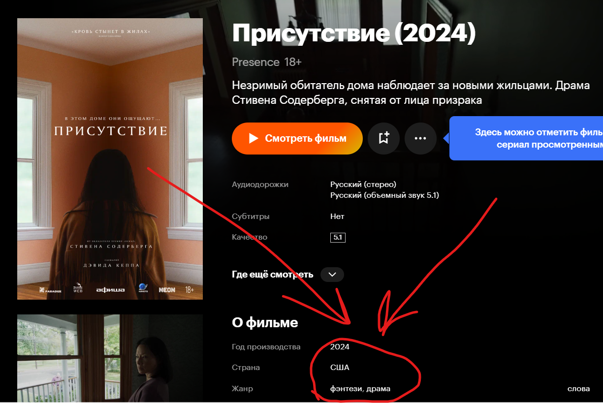 Что за филиал тивача? Нужно обсуждать фильмы. Вот, например. Малоизвестный, но достойный. Всем советую. Называется Longlegs, а по-русски Собиратель душ.