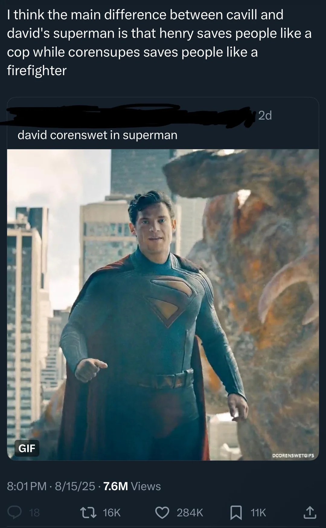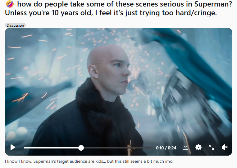 Глянул Супермена. Вроде неплохо. Но есть прям тупые моменты, хз чего у него сгорело от "Supershit". Думаю, если ты из стали и можешь улететь НА МАРС НАХУЙ, то тебе ваще похуй, какие там хештеги в интернете. Но ладно, наверное это просто комедийный момент как в марвел.