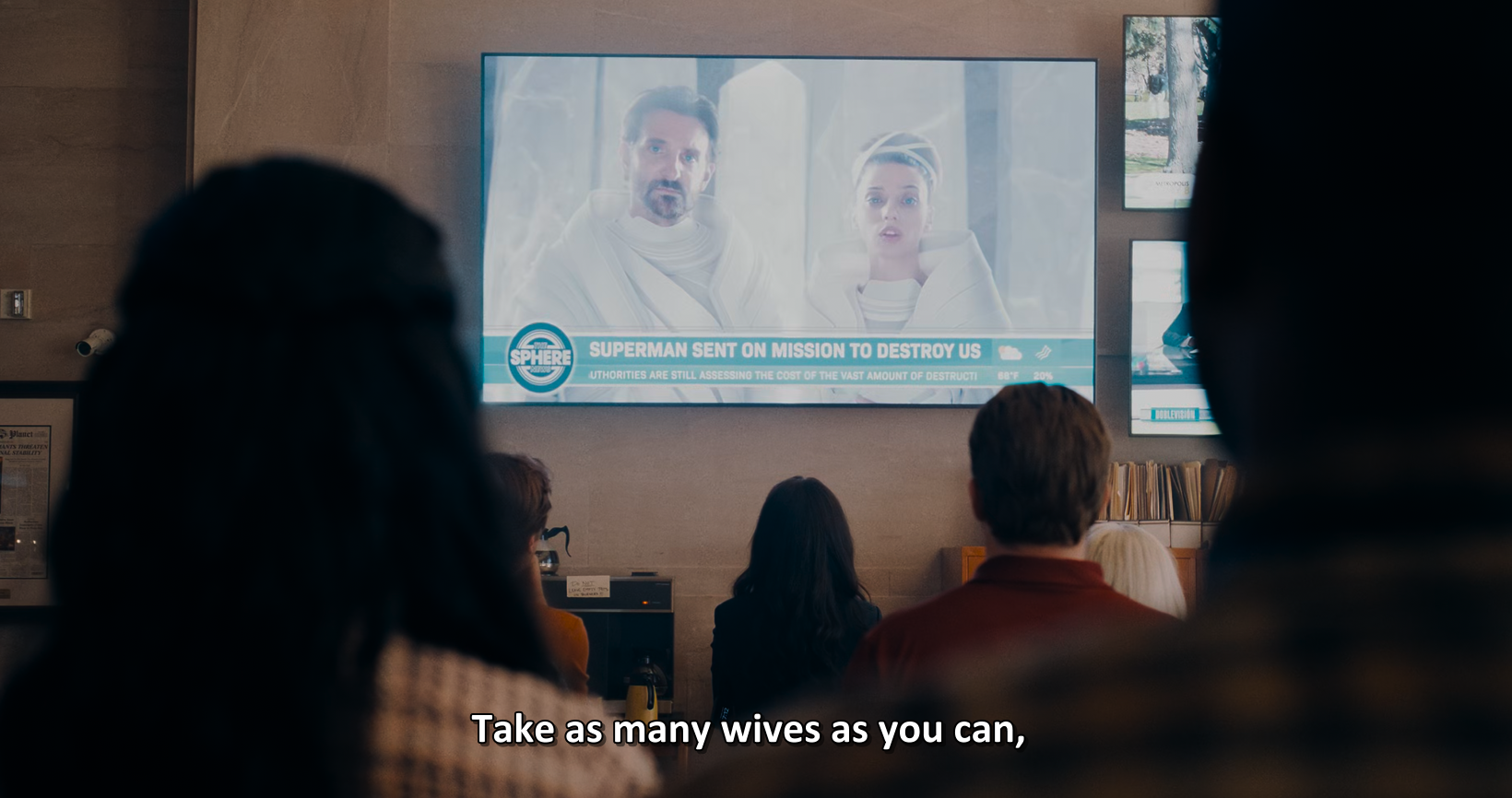 Я что-то не въезжаю, они типа обсуждают супермена, как будто это какой-то сторонний человек. Они чё не видят, что мужик, который с ними работает это и есть супермен. Он же без маски блять летает.