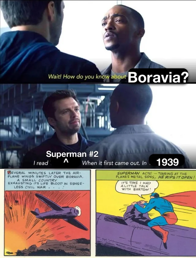 >>4013810 >Meh... Этому приколу про палевного кларка кента уже сто лет. Как и трусам поверх штанов. Я могу допустить что люди в начале 20 века были поголовно идиотами и им это заходило. Но типа задача современного автора переосмыслить произведение так, что бы оно с самого начала не казалось хуетой.
