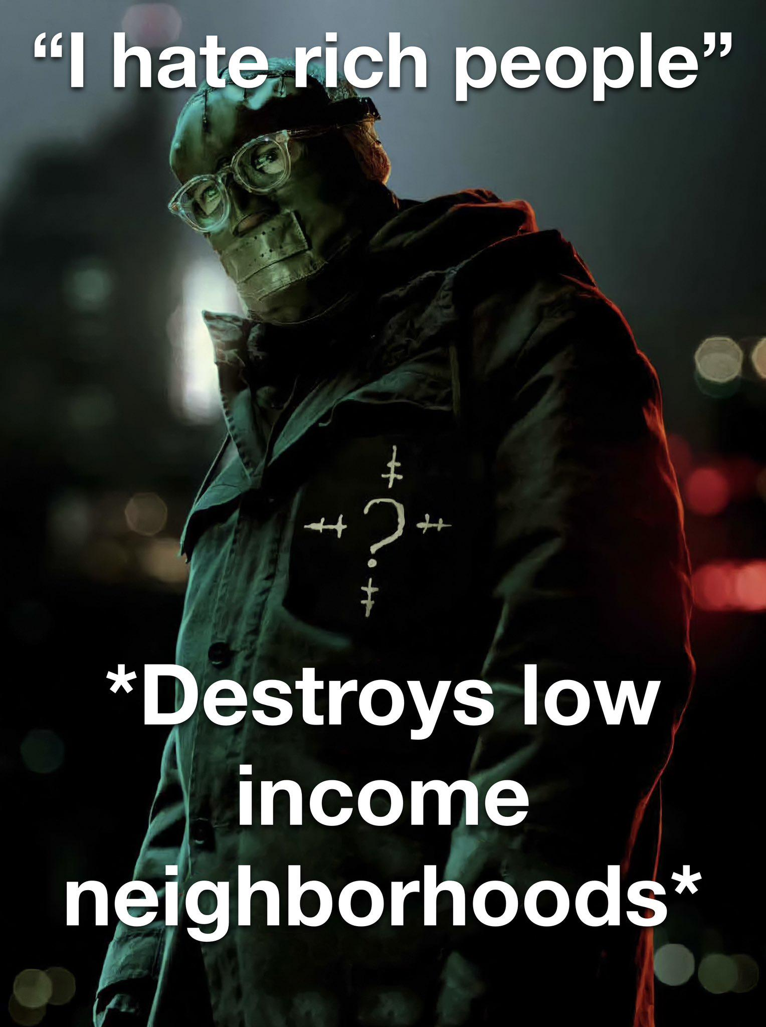 >>4014736 >и пытается затопить город с небоскрёбами нахуй Просто Ривз криво идею из Нулевого года подтащил (которую и так Снайдер спёр с Ничьей земли). Да и то там Риддлер был не форчанером, а реддитором, ещё и ирландцем впридачу
