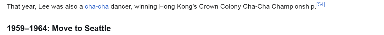 >>4005347 > Официальной и полностью подтвержденной наградой и титулом Брюса Ли является выигрыш Танцевального конкурса Сан-франциско. Так там не сольный танец был, а групповой. Всем кордебалетом и получили приз. Брюс Ли был один из толпы танцоров. Его в первый ряд ставили, потому что мелкий. Иначе не видно.