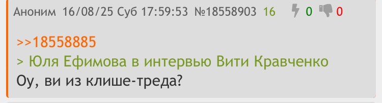 >>4013685 Но в клише-треде никогда не упоминались никакие Юли Ефимовы и Вити Кравченко. Кто это такие и какое отношение имеют к нашему фантастически талантливому треду?