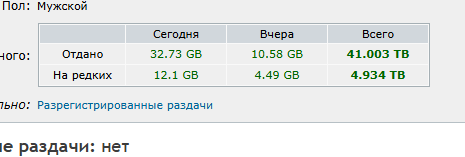 Ну и после долгих споров выяснилось, что ТЛ всё-таки принимают в качестве пруфов для дальнейшего роста (но смотреть на объём розданного не будут - все знают что это "накручивается", будут смотреть на то как в соляного хранишь редкие раздачи и залил ли хотя бы 10 фильмов сам). А рост этот сам напрашивается, потому что при отклонении от популярного начинаются проблемки (удивило, что некоторых вполне таких известных фильмов буквально нет, ладно бы хоть раздающих не было)