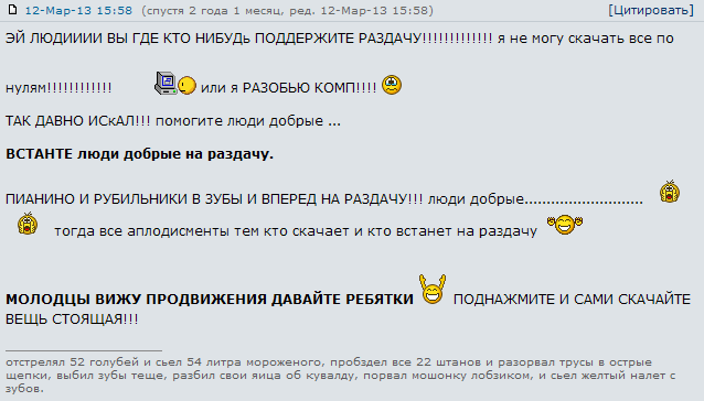 >С другой стороны, если бы ты залил на тот же рутрекер - я долго раздавал бы