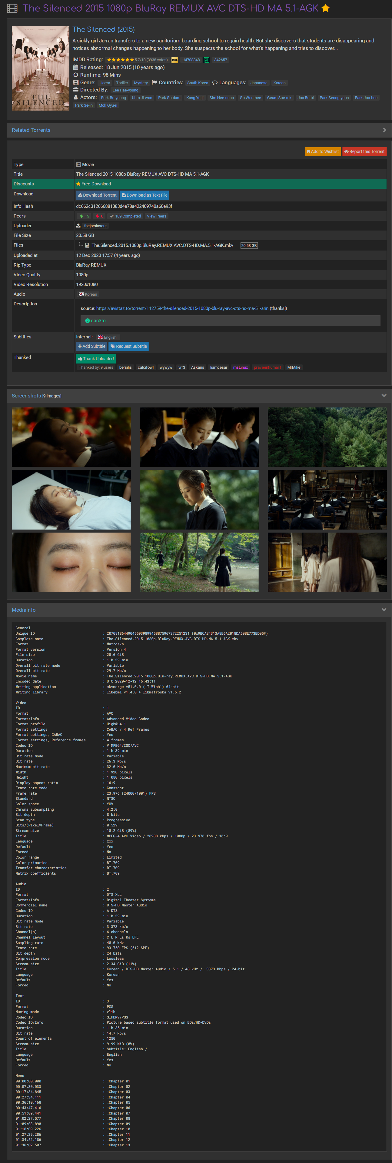 P.S. хотел себе идеальный Snatchlist, в котором были бы только фильмы, которые люблю и смотрю, но чтобы набить рейтинг пришлось качать всякую-всячину вроде мутных молдовских ужастиков, на которых можно разом заработать ~20 Гб. Это единственный минус трекера
