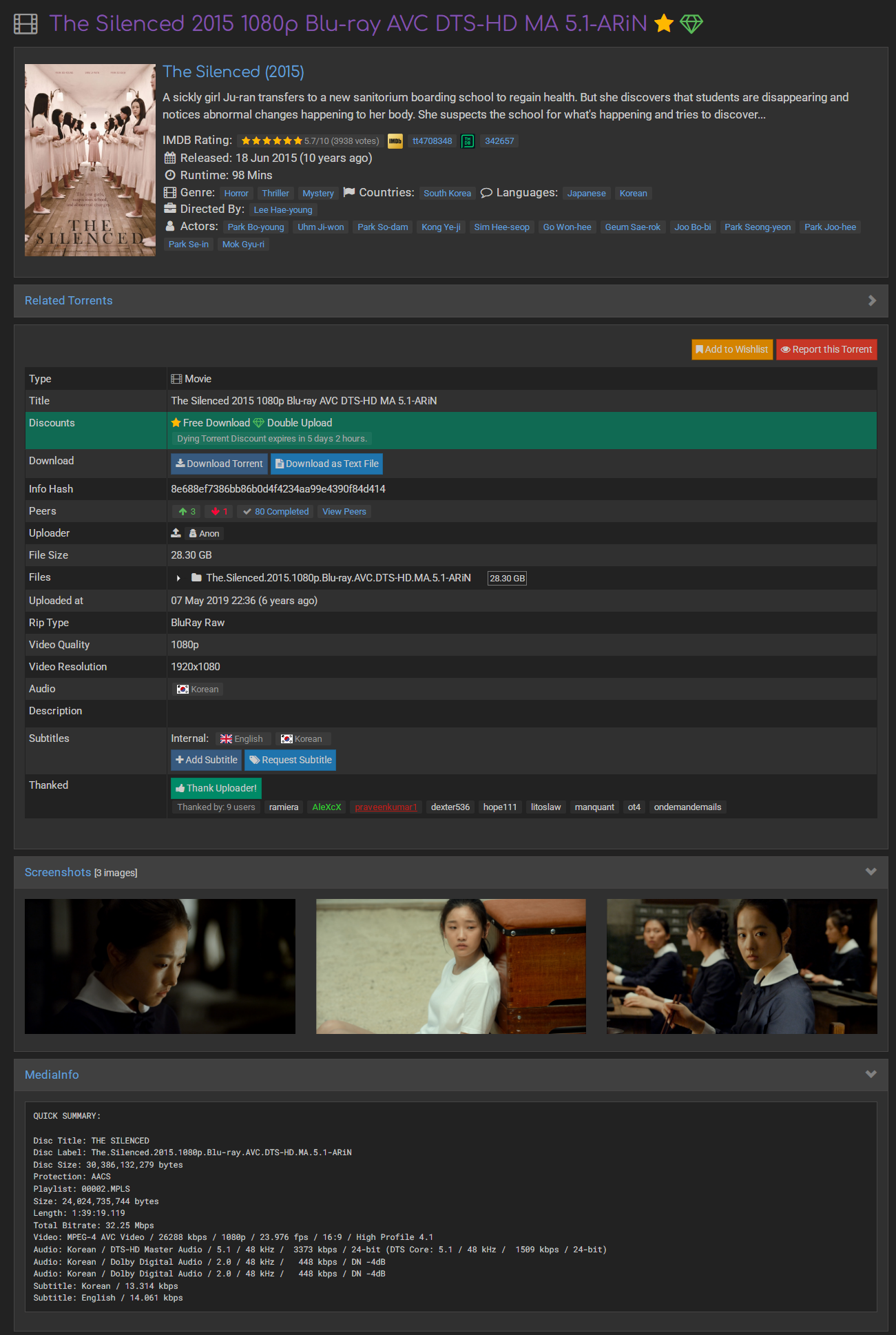 Я за год на ебучем TeamHD ни одного торрента 1 к 1 раздать не смог вообще, хотя их качали, но дауны со своими сидбоксами мешают раздачи.