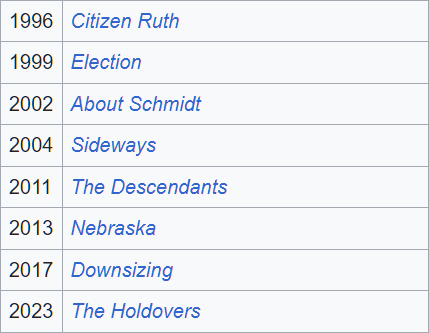 Анончики, подскажите, пожалуйста, стоит ли наворачивать целиком фильмографию Александра Пэйна, если мне очень понравились Sideways и The Holdovers? Не разочаруюсь ли я в остальных его фильмах?
