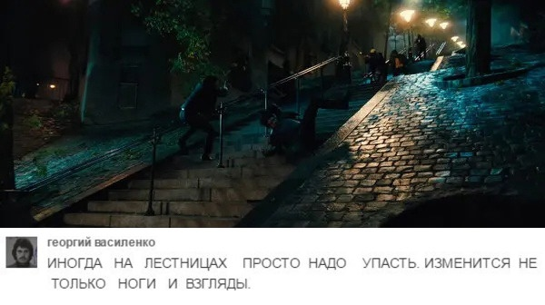 Топчанский (как и все части, форсажедауны таким похавстаться не могут, ведь у них только первая и третья норм) На удивление в полном зале была тишина, только когда он с лестницы обратно катился немного лулзов было. Еще не думал что Эдкинс в таком гриме будет драться, а он там с вертухи Ривза хуярил лол. Кстати рядом с нами сидела женщина лет 45, которая пришла одна(!) я еще в моменте подумал спросить она предыдущие то части видела вообще, но чет не спросил. Если уж и делать пятую часть, то даже не знаю че там можно еще придумать, стрельбу в самолете если только, было бы круто, а так даже не знаю, нужен перерыв, но Кеану то еще больше постареет и еще медленней станет.