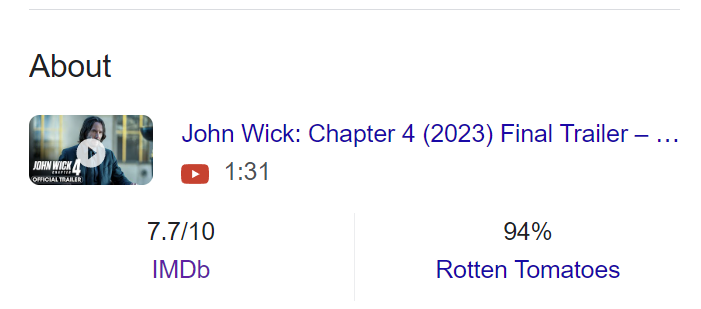 Юмора нет, клюквы нет, крутых трюков и экшена нет, потому что Ривз старый и вместо крутых пируэтов и боёв - рутинная, медленная возня где герой по несколько минут ковыряет выстрелами бронированных противников. И да, все пишут "зато без дублёра - Ривз молодец!", но лучше с дублёром, чем вот этот "секс двух паралитиков".