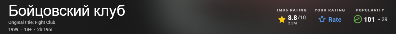 Вместо кулачных боев бесконечные монологи. Первое правило клуба - не говорить о бойцовском клубе, ну и сразу после этого идет фильм на два с лишним часа, где они именно об этом и говорят. Так много диалогов, что это не фильм, а курс лекций по философии. Прекрасный пример того как втюхать псевдоинтеллектуальный философский бред молодому поколению под видом глубокого кинематографа. Да он попытался сделать что то остроумное, но в итоге получаем кучу избитых стереотипов. Обрести смысл жизни через битье друг друга просто "гениально".
