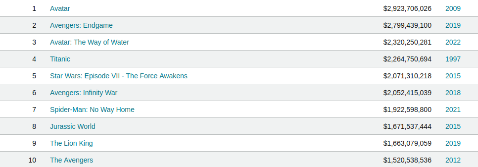 >>3753155 >собрал кассу О, да. Касса это конечно показатель качества фильма. Вспомним такие шедевры кинематографа как аватар, пробуждение силы, нет пути домой и мир юрского периода.