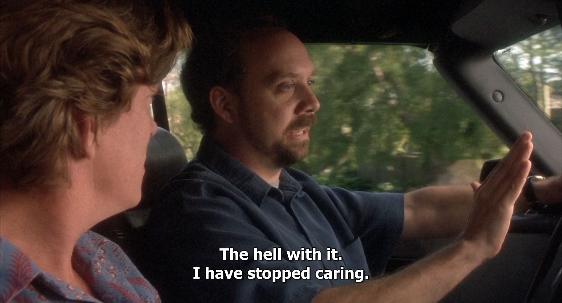 >>3772117 >>3772119 Замечательный фильм, один из наиболее любимых. В прошлогоднем "The Holdovers" у Пэйна тоже получился весьма удачный главный герой в исполнении того же Джаматти, такой же lovable loser и живой трагикомичный персонаж, которому всей душой сопереживаешь и проникаешься его взглядами на жизнь.