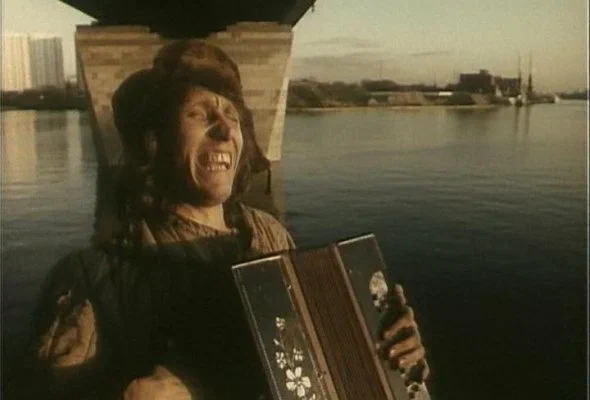 Т.е. это буквально песня, романтизирующая смерть, и что самое мрачное - она по факту подходит к тому, что происходит на экране. Полтора часа мы наблюдаем за пьяными деревенскими скуфидонами, ломящимися на своей телеге неизвестно куда, чтобы достать спички, без которых им дома не приготовить еды, разрушающими всё на своём пути и несколько раз чуть не погибающими в процессе. В сценах непосредственно жизни в деревне весь юмор троится на темах водки, смерти и несчастливого брака: кто-то когда-то набухался и выбил кому-то зубы, чья-то дочь должна выйти за престарелого скуфа, у которого недавно умерла жена, и т.д. И картинка на протяжении всего фильма выдержана в нарочито серо-коричневых тонах - даже когда показывают вроде бы красочный город с пастельными домиками, насыщенность цвета понижается, чтобы сделать его как можно более тусклым. В общем хуй знает, может я вижу то, чего нет, но в совокупности с песней мне здесь видится ясный underlying message: нахуй так жить, ребята, не лучше ли пойти к речке, броситься башкой в воду и подняться в облака. Никогда не хотелось этот фильм пересматривать, веет от него каким-то хтоническим депрессняком