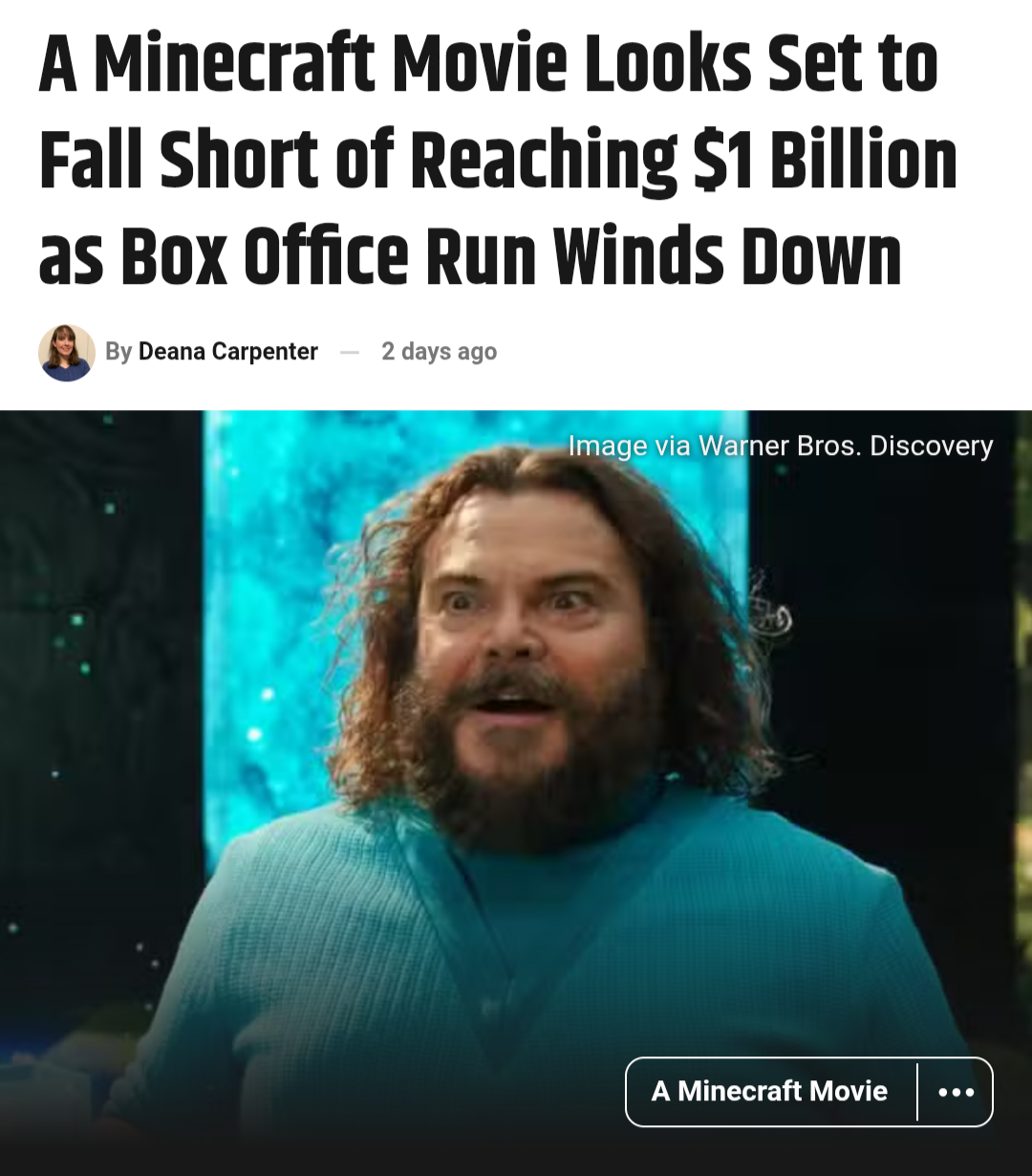 В ВБ сидит такой чел: Майнкрафт популярный ? - популярный. Момоа популярный? - популярный. Итс олрайт, жирную негритяночку на борт и погнали. Потом бля, на трейлере миллиард дизлайков, как же так. Но чел возможно и гений, сборы покажут.