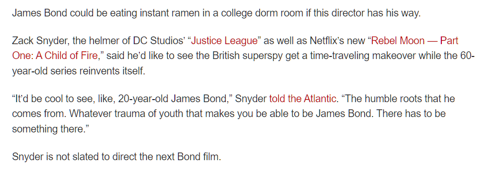 Гораздо интереснее, кого Вильнев потащит на роль Бонда. И тут чую я, может быть проблема - раз он Шаламе на роль Атрейдеса-младшего утвердил. Это реальный мискаст, причем серьезный.