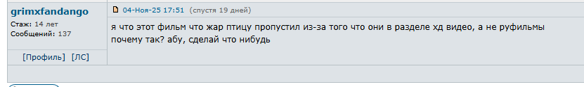 >>4052500 >>3920946 Мувчую, но всё-таки иногда читаю его - рецензии у него довольно развернутые и дают представление о фильме, даже если ты не согласен с его мнением.