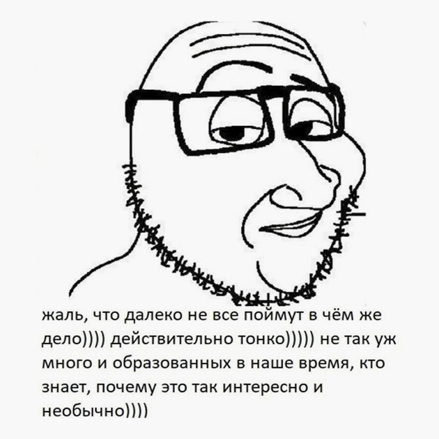 >>3875922 Так ведь не фабула непонятна, а замысел, то есть изначальная ценность высера(ну помимо бабского аудиовизуала - бабам почему-то нравится хлопать ресницами на картинку и называть её искусством, хотя они-то как раз поперёк смысла смотрят и не имеют к нему отношения) - ну понял я всю структуру и что дальше? Какая-то суходрочка маркетинговая, замкнутый круг, остров дураков. Ещё скажи, что если мне не нравится какая-то книга, то я читать буквы не умею. Проще сказать, что киноиндустрия штука хуёвая, раз линч в ней фигура высокая - как начинался голливуд конвейерный, таким и остался в ядре, а линч очередной рескин этого конвейера, а не чудо вопреки - то есть как пародия на говняк, только из того же теста и в тех же жерновах, таков контекст данной культуры.