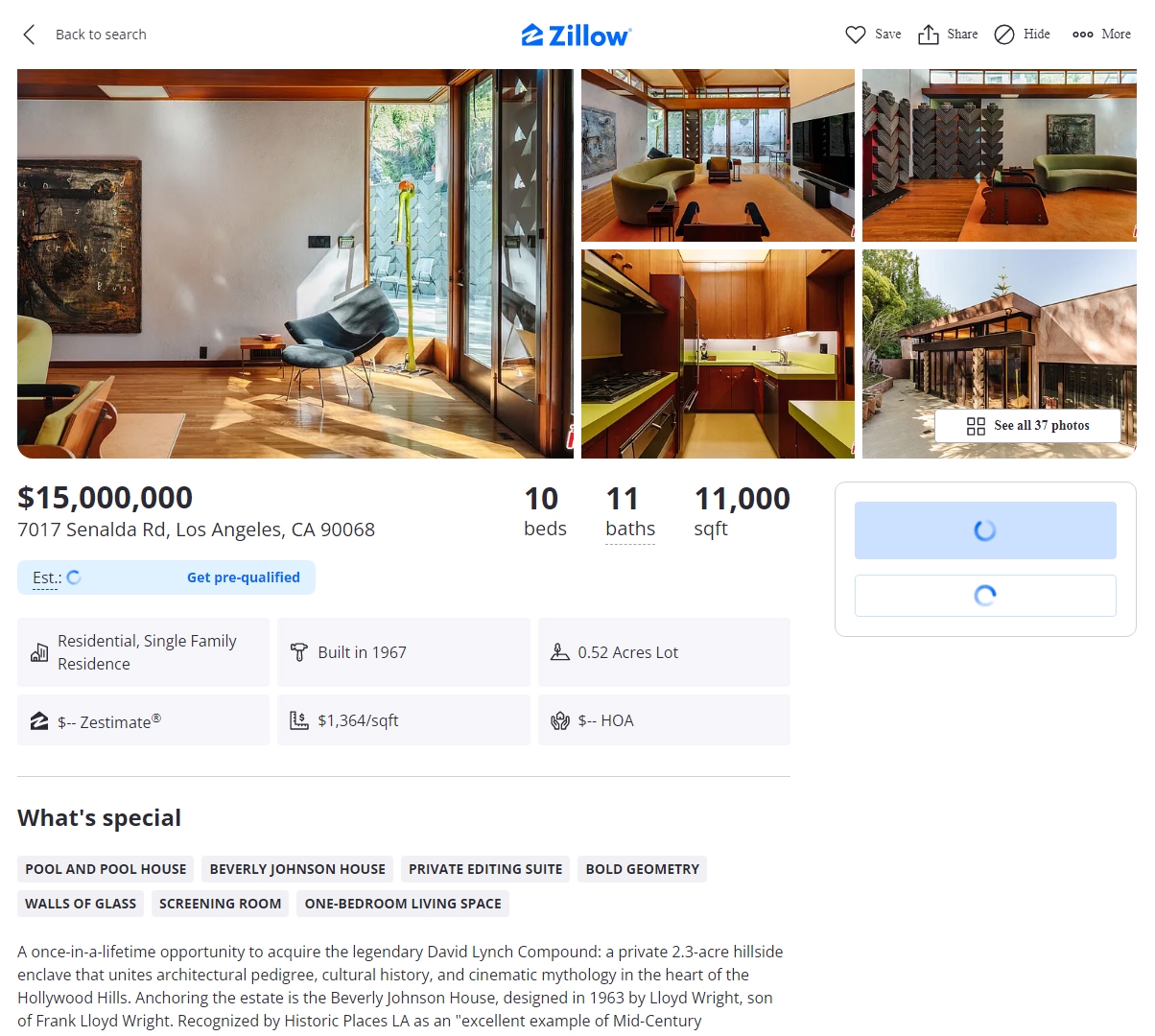 >>4063540 Дети есть. Пишут что Линч не хотел кому-то конкретно оставлять дом поэтому его продадут и разделят между 4 детьми. Интересно что он в 2024 развелся с женой. Ну может дети не настолько богаты чтобы содержать такой дом. Кстати тут кто-то рассказывал что Линч бедный. Ну видимо не настолько чтобы иметь дом в таком районе.