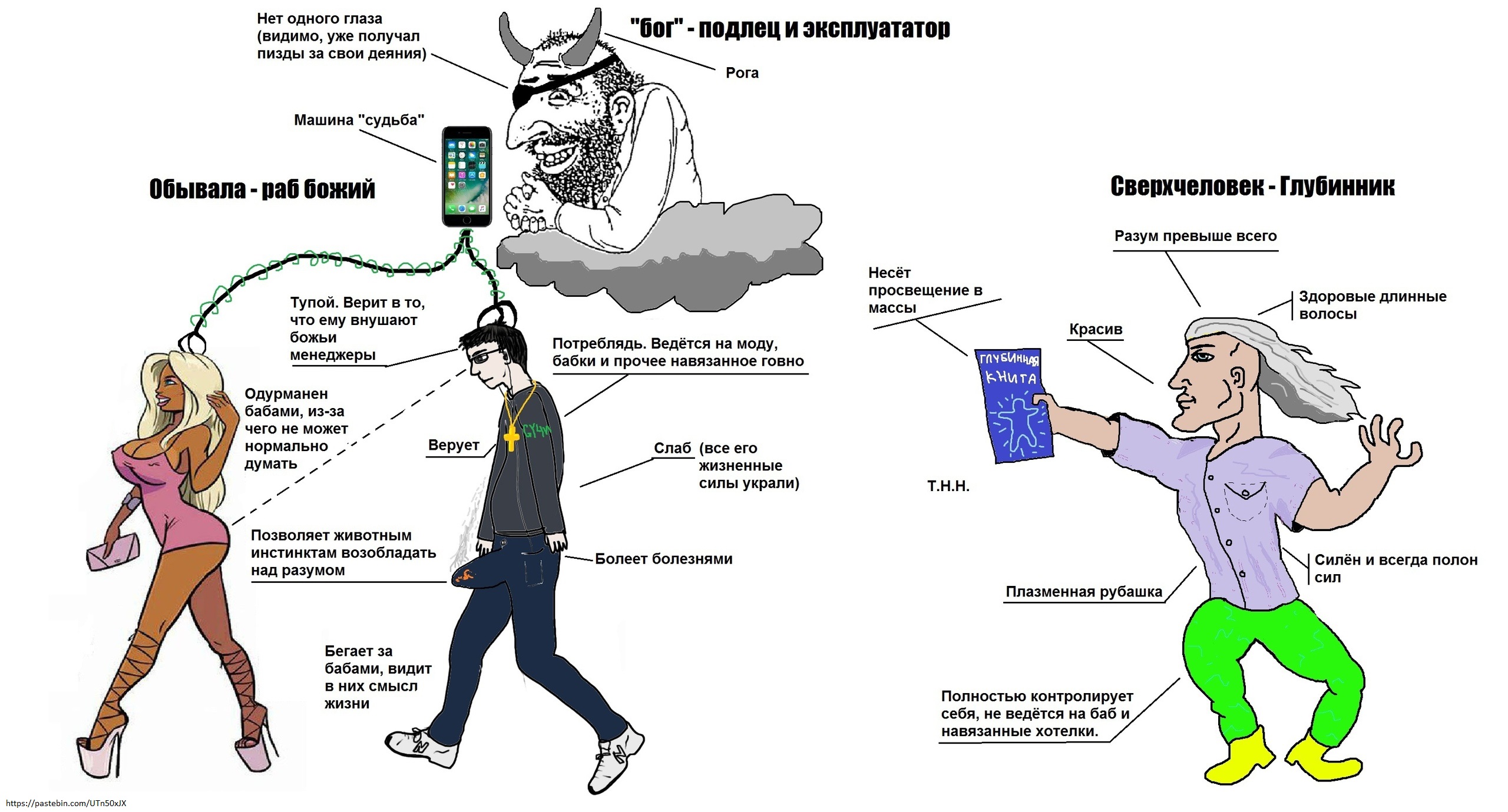 >>3920524 >Сатанизм Это идеология мазохистов, которые хотят получать просто так по ебалу от глубинариев. Это тоже самое что ходить и всем говорить "Я педофил, я вор" и при этом не быть не быть ни педофилом и вором.