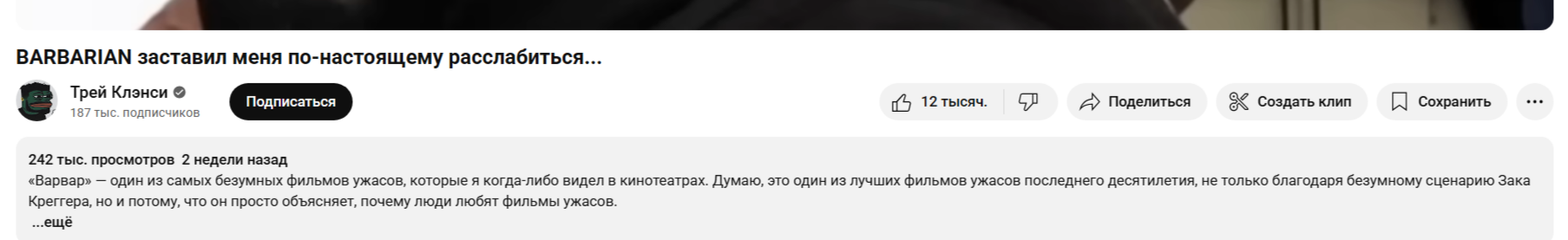 зак креггес судя по варвару использует жанр хоррор чисто как старт своей карьеры. в варваре он высмеивал клише этого жанра и экспериментировал со структурой, в орудиях походу будет тоже самое. респект таким челам, презирающим жанр для быдла. хоррор для нормальных людей, которым хорроры не нравятся