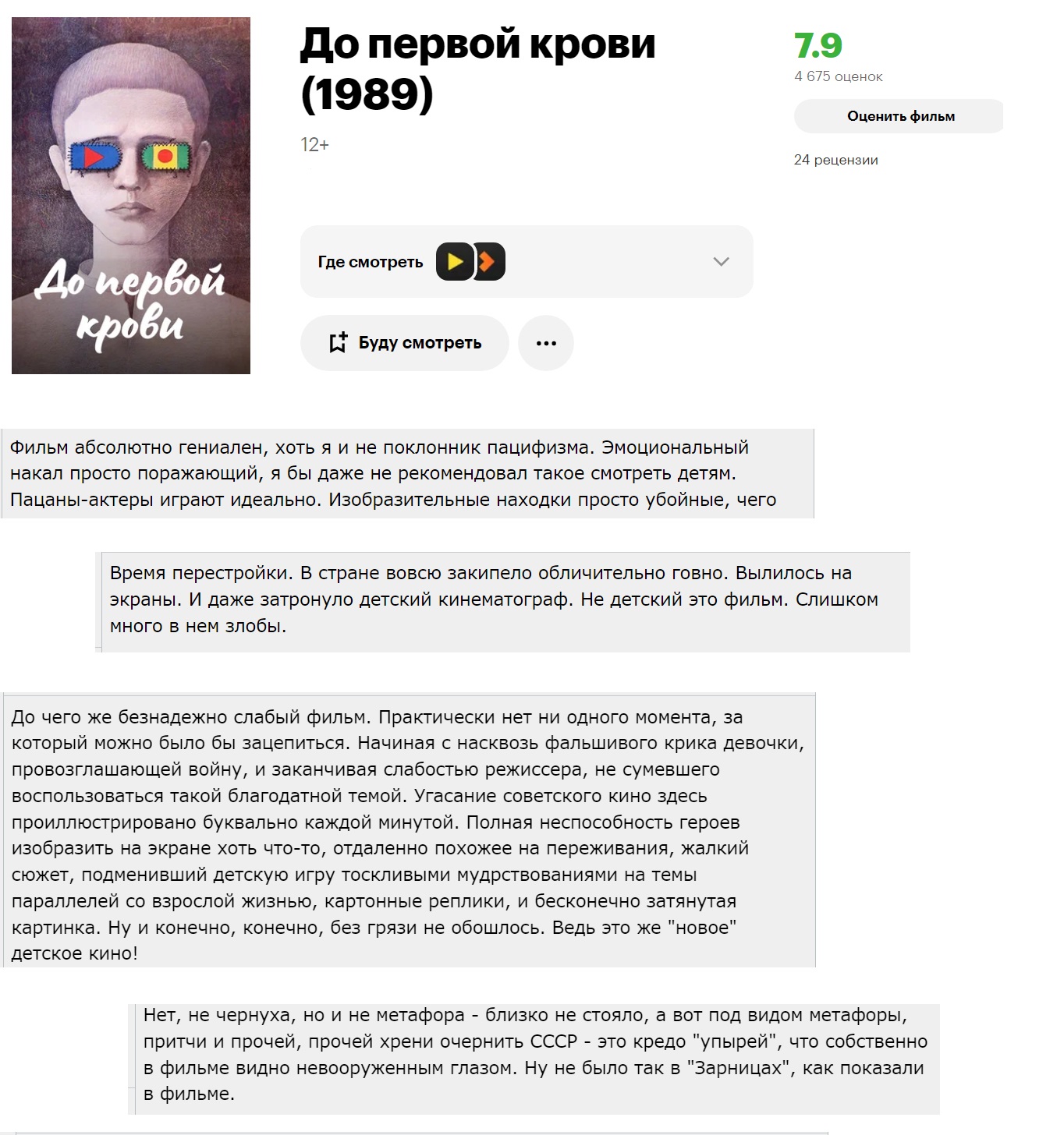 Отложил на просмотр несколько перестроечных фильмов, очень тяжело идет, как будто из под палки. Зачем смотрю? Многие их этих фильмов вызвали/вызывают бурную дискуссию. Создается впечатление, что нужно какую-то подготовку пройти перед просмотром. Просто получить удовольствие не так то легко, многие картины выглядят визуально очень уныло.
