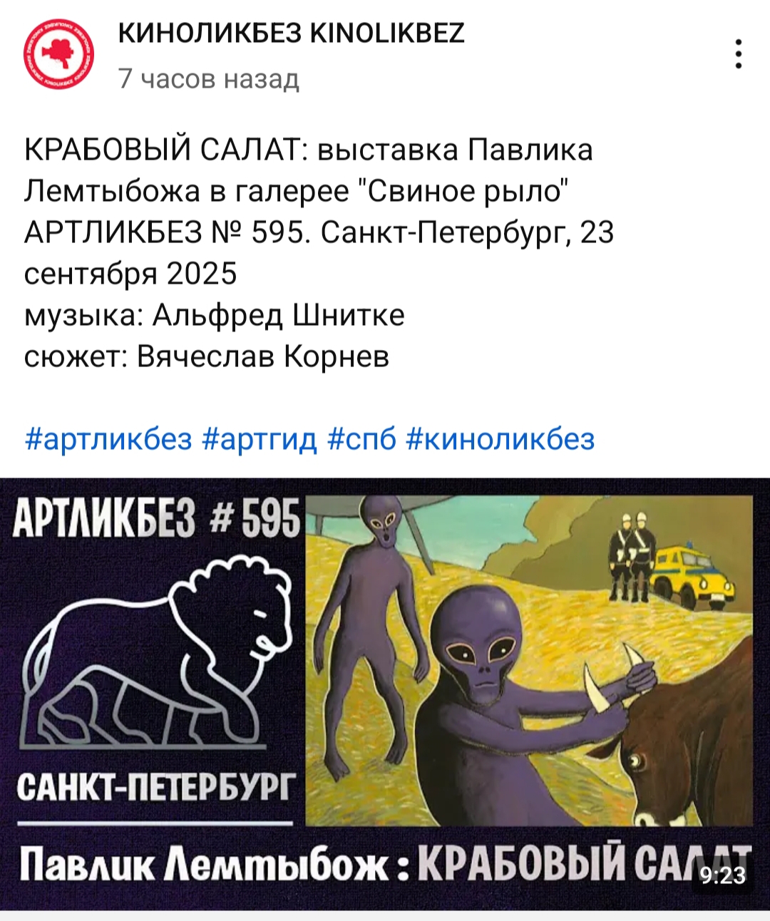 Художник Павлик Лемтыбож проводит выставку "Крабовый салат". Сюжет: Вячеслав Корнев. Так и знал, что Корнев посиживает в муваче. Крабовый салат – это мем клише-треда. Ждём выставку "Нервозубов и губёхи".
