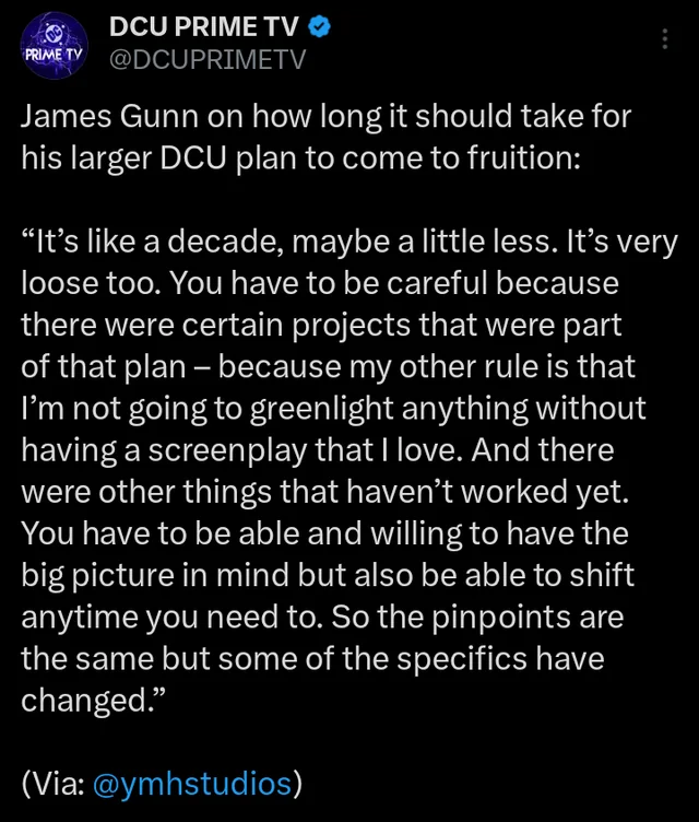 Так, интервью для BobaTalks, Ганн рассказал о долгосрочных перспективах DCU, в частности о том, как сюжетные линии таких сериалов, как "Миротворец" и "Фонари", будут связаны с предстоящими фильмами, например, "Супермен: Человек завтрашнего дня".
