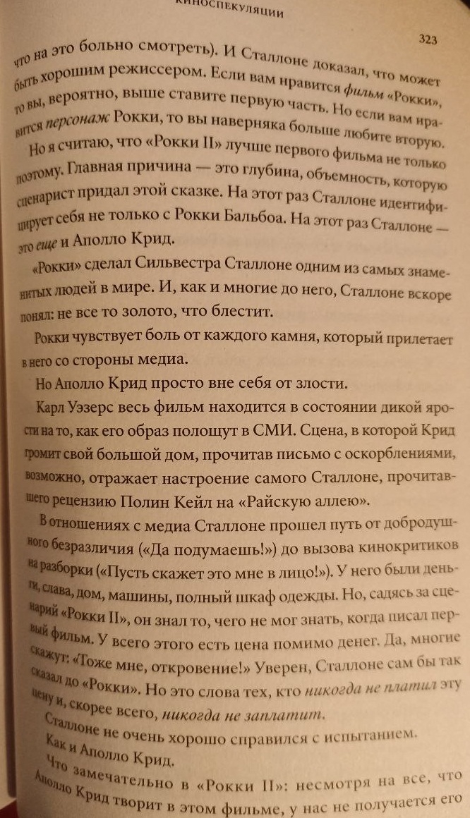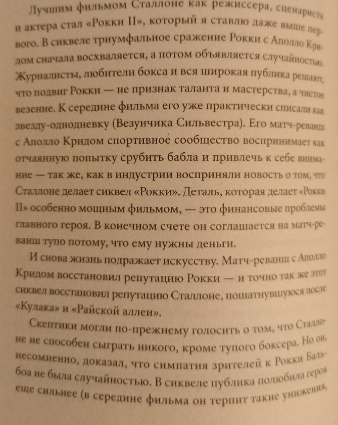 РОККИ 2 (1979) ну тут похожий артхаусный вайб, только рокки получил учть денег и слил их на говно. В этом фильме рокки стал еще тупее и весь фильм ведет себя как кретин. ХЗ в чём прикол, какое то воплощение simple jack из солдат неудачи. работает мясником, бомжом, его жена работает бичом, потом драма, короче снова бокса на 10 минут и 1:45 ходьбы и диалогов в стиле тупой и еще тупее. Тут впервые юзается тема типа рокки потерял кураж и нужно МОБИЛИЗОВАТЬСЯ для победы. В дальнейшем в серии фильмов рокки и крид это станет основной темой. Короче снова эксплуатируют тему челвоека с низов, только в этой серии мы выясняем что рокки настолько аутист и двачер что даже не умеет читать и тупо разговаривать с людьми. Он даже говняк прорекламировать не может. поэтому идет таскать мясные обрезки. Ай да сталонне, ай да аутист!