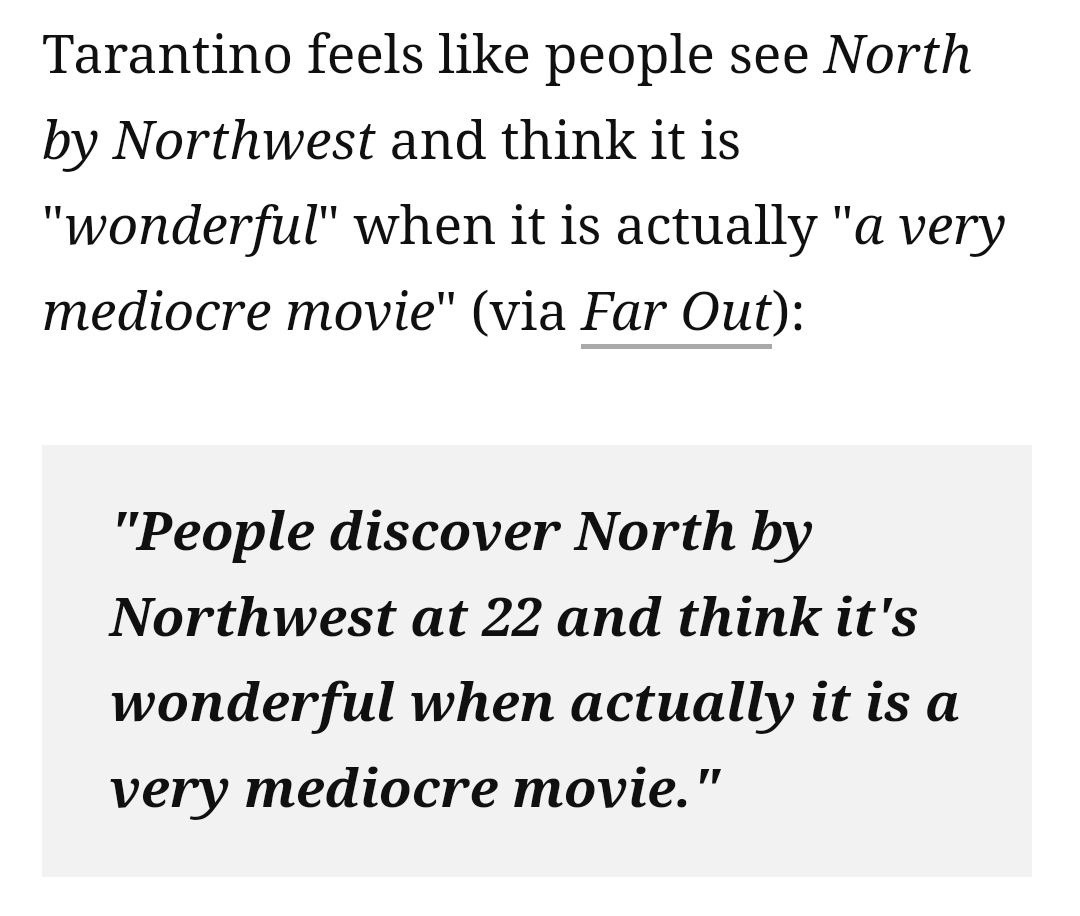 > так как сейчас кинопроизводство и режиссёрское мастерство ушло сильно дальше и есть множество примеров фильмов, которые сильнее во всех аспектах, чем хичкоковские поделия