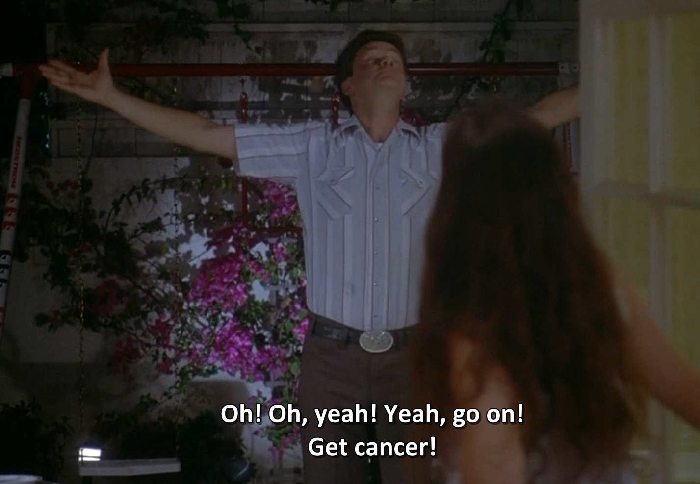 А в нулевых, на экране выпуклого телика 4:3, на VHS c прокруткой через пульт видеомагнитофона, да и ещё с подростковой гиперсексуальностью и наивностью в фоне — все эти детали были незаметными и работали как надо. Это был шок-контент, от которого, если верить пиарщикам тех лет, блевали даже в Каннах.