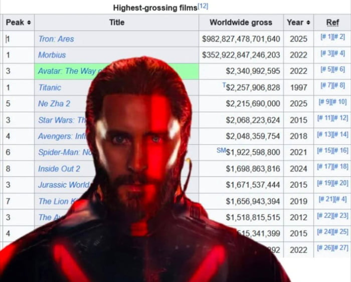 Все пишут, что новый «Трон» проиграл дебютный день «Морбиусу» — связь тут очевидна. В двух картинах снялся Джаред Лето. И действительно, кинокомикс в свою пятницу собрал $ 17 млн.