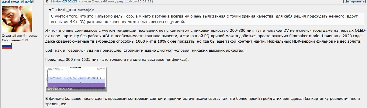 >>4067451 Чет я не восхищен старыми фильмами, которые тупо апскейнули до 4к. Смотрится не лучше оригинала. Считаю что эти "перевыпуски" хуйня полная. Вот современный, изначально снятый годно фильм под такое разрешение когда смотришь с хуедерами всякими, то заебись, а фильмы того времени уж лучше тогда вообще на crt смотреть, больше погружения будет.