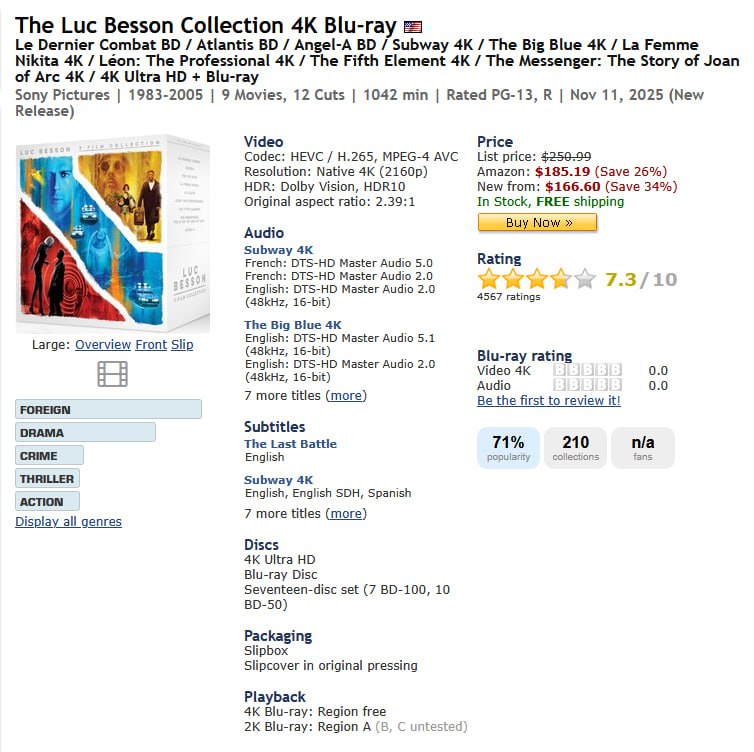 1) На имдб есть одна картинка испанского (или латиноамериканского?) блюрея, пикрил 1. Выглядит реальной, задник отличается от обложки DVD. (впервые вижу красный бокс у блюрея)