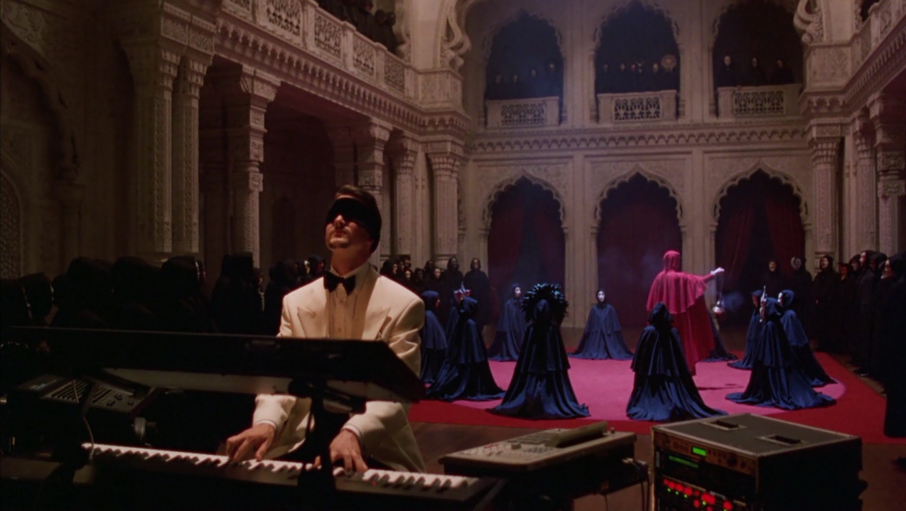 Вместо метафизической Матери — вполне конкретная дочь, вместо масонской ложи — помещение церкви. И даже обмен биологическими жидкостями происходит внутри аппарата по установлению ДНК-отцовства. Хотя прежде полковник всё же вынужден надеть перчатки и опуститься на колени перед распластавшейся на троне Ж.