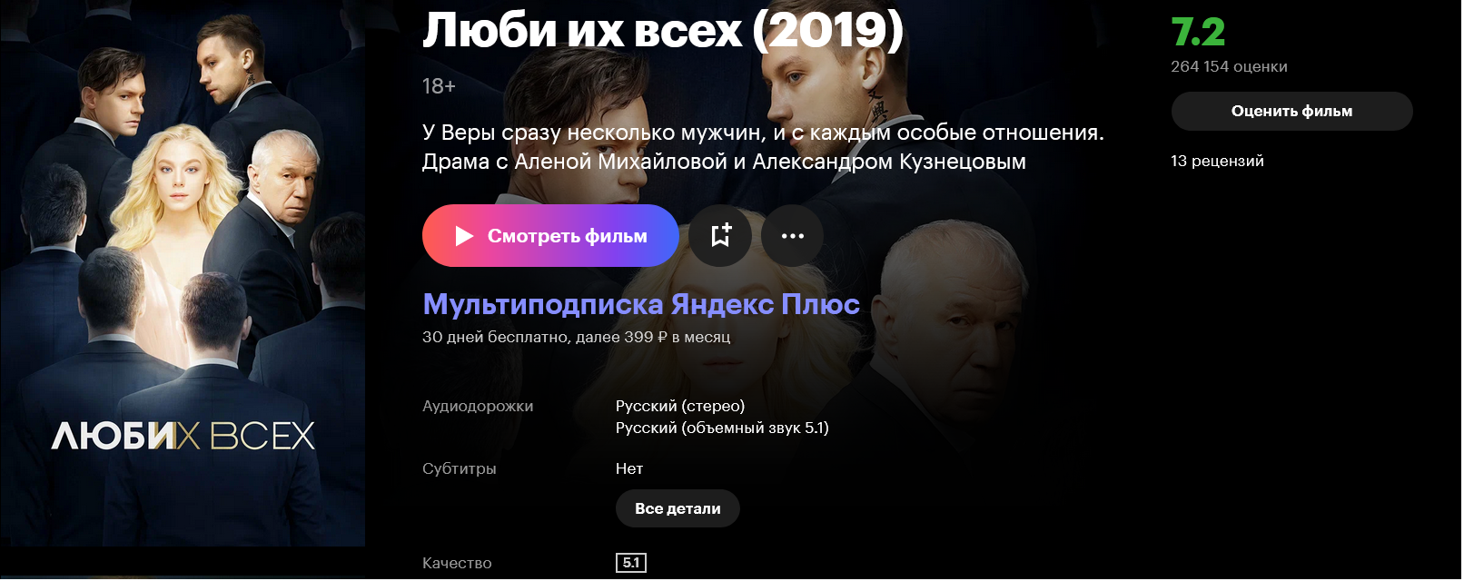 ино на выходные. Люби их всех. 1. Современный российский, 2019 год. 2. Тема- девушка вымогает деньги у богатых мужиков. 3. Извилистый не тривиальный сюжет. 4. Очень хорошо визуально, красивые кадры. Вот реально красивый видеоряд. 5. Показано, что люди у нас многие плохие, какии то моральные уроды. Позитивно только старые женщины. И студенты. 6. Как действуют персонажи - не вполне жизненно. Насколько я видел в жизни, по другому люди себя ведут. Но фильм как бы психологический эксперимент. 7. Нет чернухи ни в сценах, ни визуально. Это хорошо, потому что устали мы от чернухи. 8. Одна из тем - мучения недолюбленных людей. 9. Морали в фильме нет. 10. Получилась психологическая лаборатория по изучению поведения мужчин. То есть фильм как бы о мужчинах глазами циничной женщины. 11. Смотреть интересно. >>4075701 Ну попробуй, епта, У тебя полномочий не хватит, определяльшик. Так что завали хлебало и не кукарекай понапрасну. 18+ НАСТОЯЩИЙ МАТЕРИАЛ (ИНФОРМАЦИЯ) ПРОИЗВЕДЕН И (ИЛИ) РАСПРОСТРАНЕН ИНОСТРАННЫМ АГЕНТОМ МАРКОВЫМ СЕРГЕЕМ АЛЕКСАНДРОВИЧЕМ ЛИБО КАСАЕТСЯ ДЕЯТЕЛЬНОСТИ ИНОСТРАННОГО АГЕНТА МАРКОВА СЕРГЕЯ АЛЕКСАНДРОВИЧА