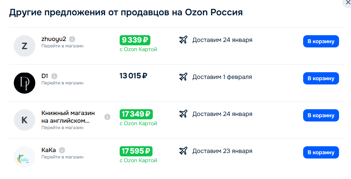 >>4099146 У одного продавца написано 105 штук, но судя по дате доставки 27 января это типа ждать, когда заказ придёт в амазона. Я бы конечно купить хотел, но мне нужен в идеале. а учитывая вес книги и дерьмовейшую упаковку амазона, это практически невозможно. Хотя хз может у книги есть своя упаковка кроме плёнки.