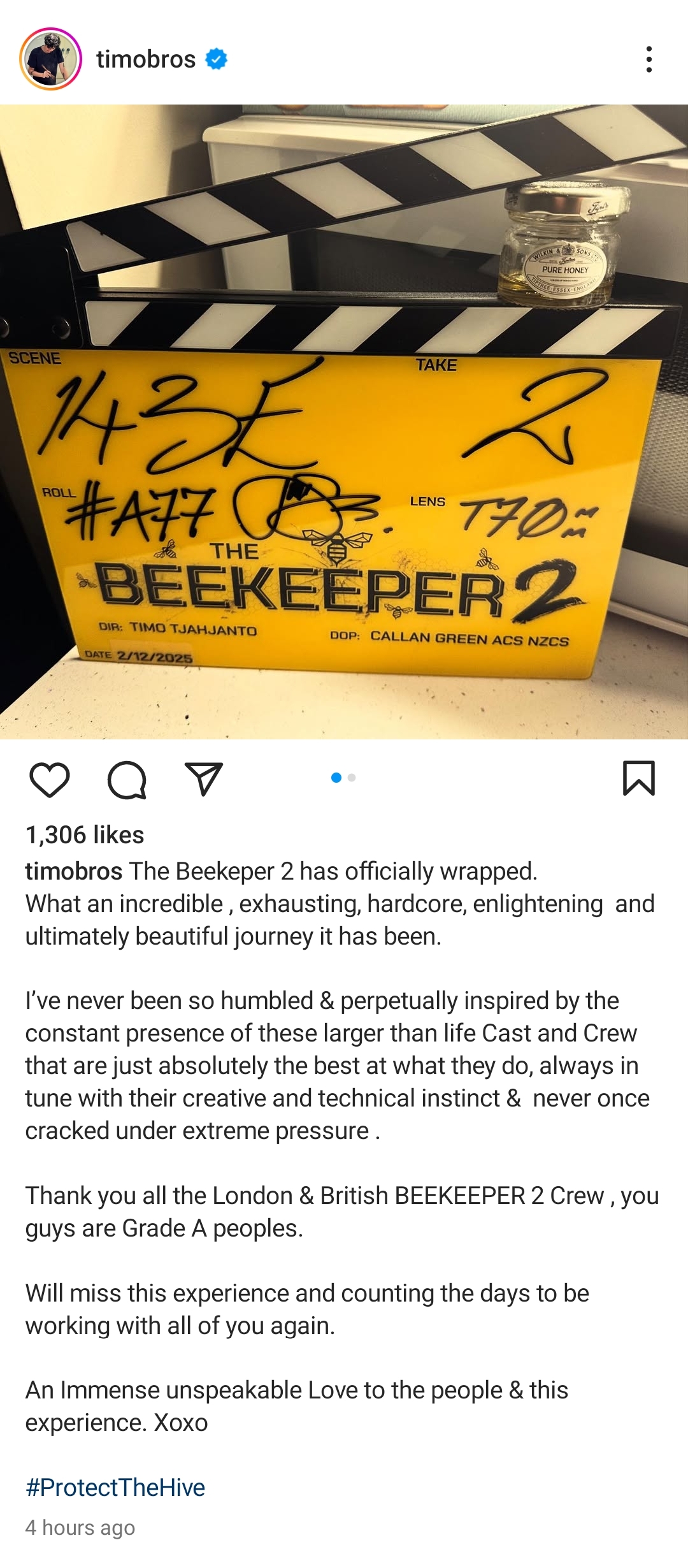 "Пчеловод меня привлекает тем, что, когда я посмотрел первый фильм, я подумал: "Ого, это же, по сути, Стетхем играет одного из моих любимых персонажей во вселенной Marvel - Карателя. Раз я пока что не могу снять фильм про Карателя, раз боги кинематографа пока что не позволяют мне этого, то я сделаю из Адама Клэя свою собственную версию Карателя. И это здорово! Я думаю, что в Стетхеме есть нужные качества для этого, он стоический, как Фрэнк Касл. И мне нравится, что Адам Клэй - парень, который очень ярок в своих проявлениях насилия. Он очень, очень креативен в этом.