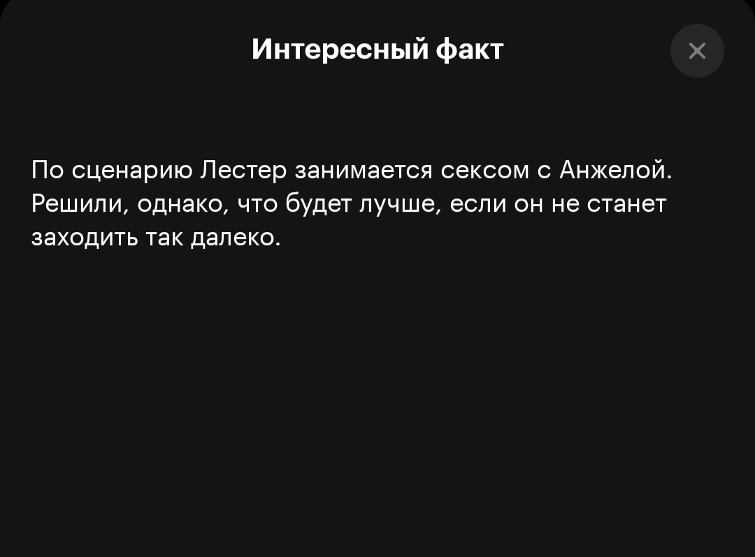>>4085154 At first взбугуртнул, что зассали таких смелых решений, но потом подумал, что так всё же лучше. Лестер раскрывается как очень хороший человек, когда отказывается от секса с малолеткой и идёт умиляться фотокарточке своей семьи.